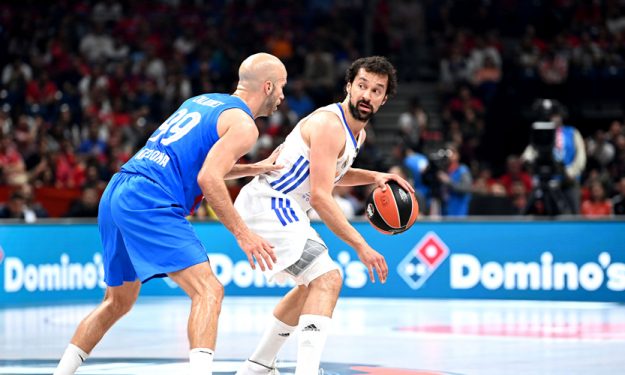 Μαγικό πρώτο ημίχρονο για το… κοινό, με τη Ρεάλ να προηγείται, αλλά τον Σλούκα, με καλάθι κοντά στη λήξη του πρώτου ημιχρόνου στα μούτρα του Χεζόνια, να δίνει το σύνθημα.
