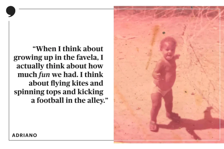 Ας πάρουμε τα πράγματα από την αρχή, ο Andriano Leite Ribeiro γεννήθηκε στις 17 Φεβρουαρίου του 1982 στο Ρίο ντε Τζανέιρο της Βραζιλίας από την Rosilda Ribeiro και τον Almir Leite Ribeiro. Ο Αντριάνο έζησε έντονη παιδική ηλικία στις φαβέλες της Βραζιλίας μεγαλώνοντας μαζί με τον αδελφό του απο μια πολύ φτωχή οικογένεια. Από την εφηβεία είχε έφεση στο ποδόσφαιρο όπου έπαιζε σε χωμάτινα γήπεδα ξυπόλητος, η πρώτη του ομάδα ήταν μια τοπική ακαδημία με το όνομα Ordem e Preogresso. Εκεί κέρδισε το ψευδώνυμο «αγορι ποπ κορν» όταν η γιαγιά του κατά την διάρκεια αγώνα τον φώναξε στην άκρη για να του γεμίσει τις μπαταρίες με ένα τηγάνι ποπ κορν.
