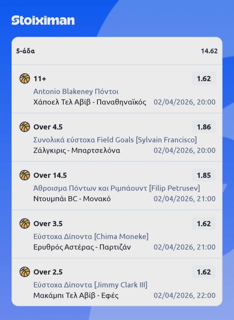 Ο Μπλάκνεϊ ελπίζω και περιμένω να βάλει αρκετούς απέναντι στην χωρίς Γκραντ άμυνα των Πρασίνων, αλλά όχι τόσους για να χάσει ο ΠΑΟ. Ο άνθρωπος είναι καλαθομηχανή και με την κατάσταση περίεργη στην ομάδα, έχω την εντύπωση ότι ως Αμερικάνος, θα κοιτάξει την πάρτη του αρκετά εκτελεστικά, για να δείξει πράγματα μήπως τον τσιμπήσει καμία από τις ομάδες που ψαρώνουν με τέτοιους του χρόνου: Εφές, Μακάμπι κτλ.