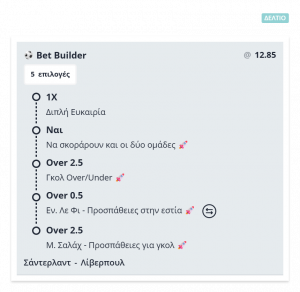 Στη συνέχεια σας παραθέτουμε το σημερινό μας Bet Builder για το ματσάκι στην Πρέμιερ Λιγκ.
