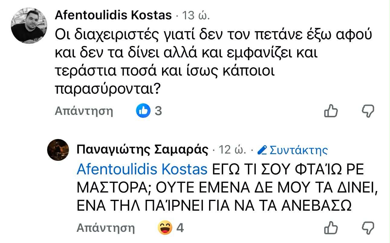 Συνολικά μέσα σε διάστημα 15 ημερών έχει βγάλει περίπου 32 χιλιάρικα και άλλες τόσες ευχές από τον λαό των χαστών που έχει κουραστεί να βλέπει το μέγεθος της αναλγησίας.