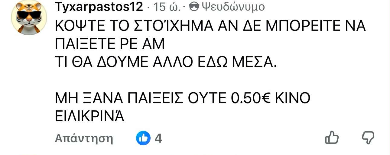 Τα σχόλια που αντικρύσαμε κάτω από την ανάρτηση, όπως θα περίμενε κανείς δεν ήταν και τα πιο ψύχραιμα, οπότε παρουσιάζουμε μόνο όσα μπορούν να χαρακτηριστούν ως PEGI 3: