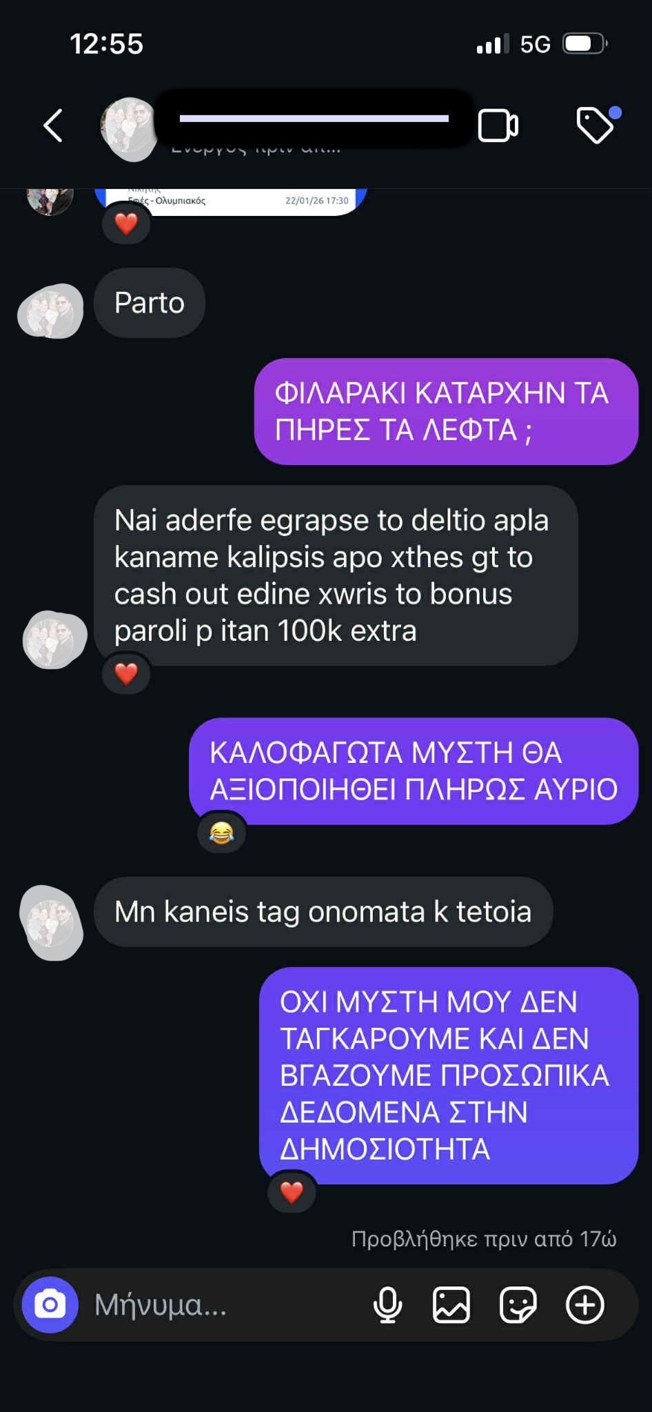 Η αλήθεια βέβαια είναι, πως όπως μας ενημέρωσε, είχε παιχτεί κάλυψη για σίγουρο κέρδος, ενώ μας ζήτησε να παραμείνει ανώνυμος, υποθέτουμε από τη μεριά μας, για να μην μάθει η νυν (ολογράφως μελλοντική πρώην κοπέλα του) ότι έχει πλέον λεφτά.