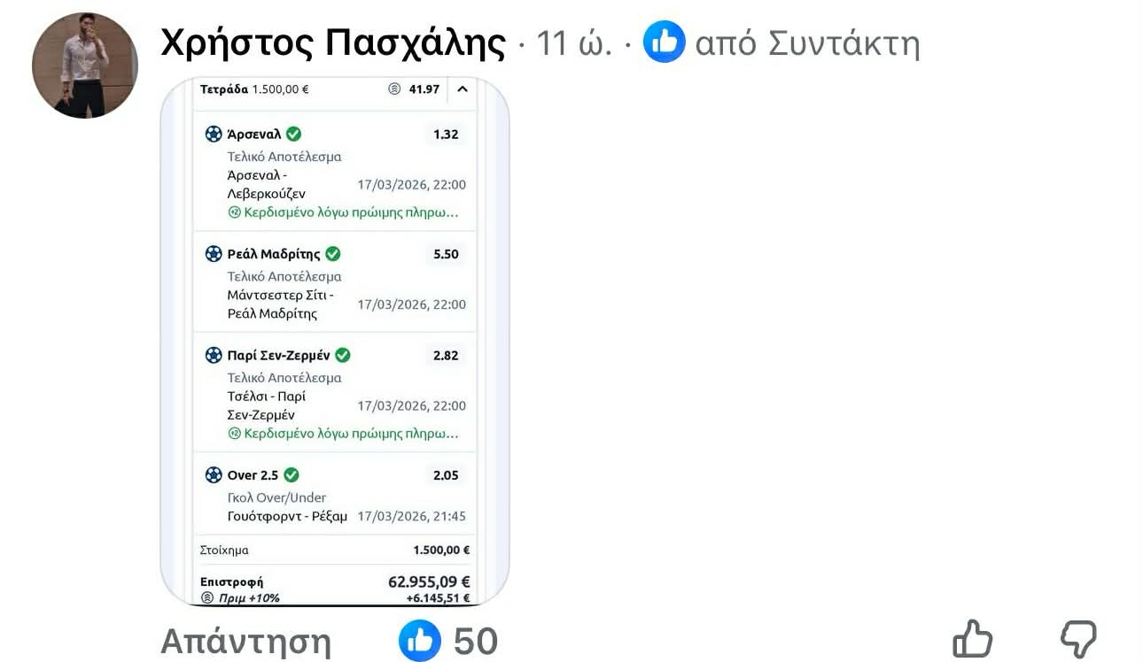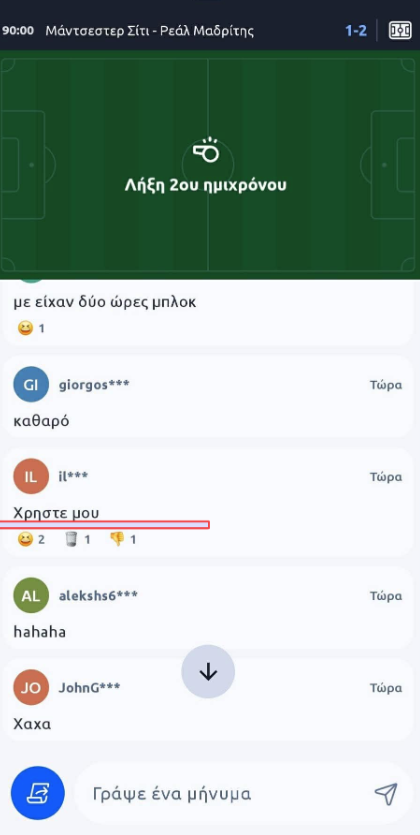Προς μεγάλη εντύπωση όλων, η καρδιά του μεγάλου νικητή, όχι μόνο άντεξε, αλλά κατάφερε μέχρι και να πληκτρολογήσει το παρακάτω μήνυμα στο Live Chat του αγώνα στην Stoiximan:
