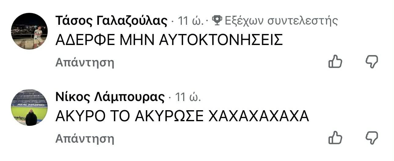 Επειδή όμως εμείς ίδρυμα δεν είμαστε, ούτε μπορούν να κερδίσουν όλοι άνευ όρων τον σεβασμό μας, είχαμε και τέτοιες αντιδράσεις: