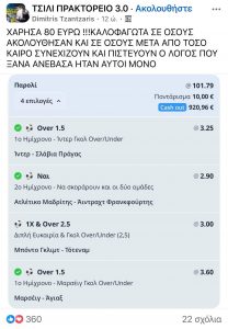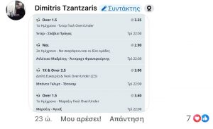 Κάπου στο 66ο λεπτό και με τα 2 από τα 4 σημεία να έχουν ήδη πρασινίσει, ο πρωταγωνιστής μας έκανε live update δημοσίευση προκειμένου να πάρει θετική ενέργεια και το απαραίτητο σπρώξιμο από τον λαό του Πρακτορείου μπροστά σε αυτή την άνιση μάχη: