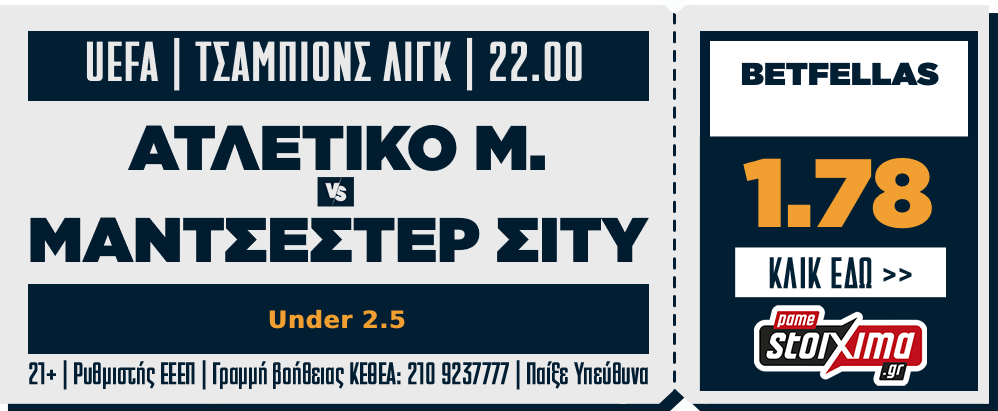 O Σιμεόνε στη συνέντευξη τύπου υπερασπίστηκε την επιλογή του να παίξει τόσο αμυντικά στο Μάντσεστερ και δήλωσε ότι η ομάδα του δεν πρόκειται να αλλάξει προσέγγιση στον επαναληπτικό. Γνωρίζει ότι αν δώσει χώρους στη Σίτι θα το πληρώσει και από την στιγμή που χρειάζεται ένα γκολ για να πάει στην παράταση περιμένουμε να παίξει και πάλι πολύ κλειστά, περιμένοντας μια καλή φάση για να βρει το γκολ. Το διπλό έχει καλές τύχες όμως θα προτιμήσουμε το under 2,5 που πληρώνει το ίδιο (1,78/PameStoixima).