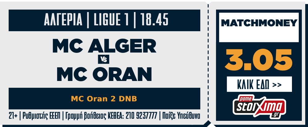18:45 MC ΑΛΖΕΡ – ΟΡΑΝ 2 DNB (3,05)