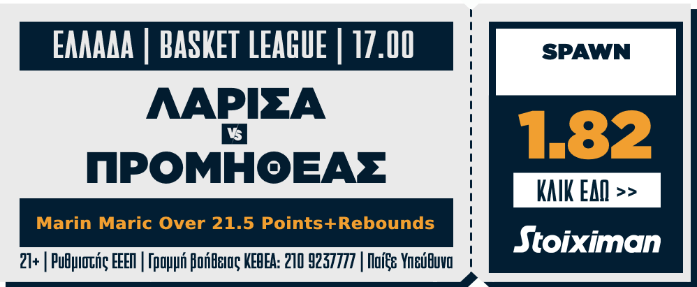 Το δεύτερο σημείο μας για σήμερα, είναι ο συνδυασμός Points+Rebounds του Marin Maric, με line 21.5 και απόδοση 1.82 στην Stoiximan.