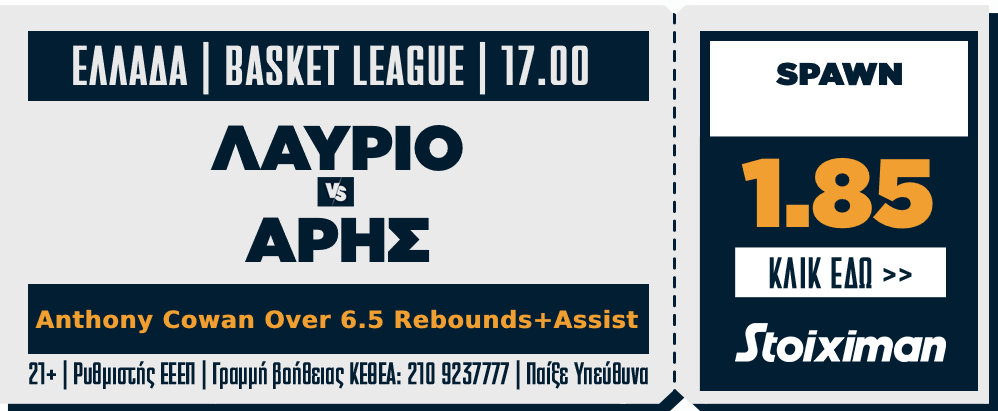 Καλησπέρα, μετά το χθεσινό tilt, όπου περιμέναμε 1 stat του Matt Costello για 15 αγωνιστικά λεπτά και δεν κατέγραψε κάποιο, και εξίσου και του Jaleen Smith για 10 αγωνιστικά λεπτά επίσης 1 stat, και ούτε αυτό έγινε τελειώνοντας με 16 και 5 αντίστοιχα , σήμερα θα πάμε στο Κλειστό του Λαυρίου για τον αγώνα της ομώνυμης ομάδας με τον Άρη για την Α1 Stoiximan Basket League.