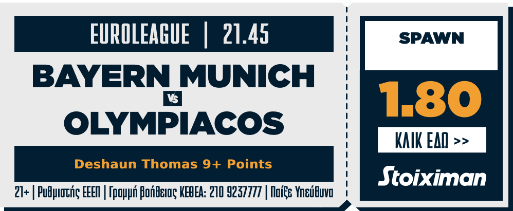 Και περνάμε στο δεύτερο ματς για σήμερα, στο Μόναχο, για τον αγώνα της Bayern Munich απέναντι στον Olympiaco.