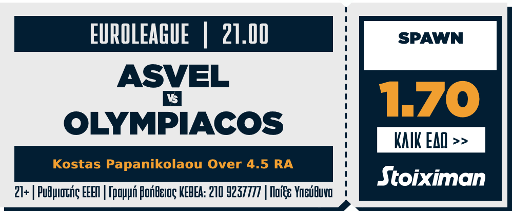 Το σημείο μας σήμερα από τον αγώνα αυτό, είναι ο συνδυασμός Rebounds+Assist του Kosta Papanikolaou με line 4.5 και απόδοση 1.70 στην Stoiximan.