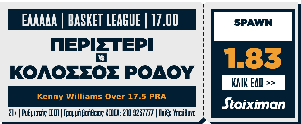 Σήμερα θα μεταφερθούμε στο κλειστό του Περιστερίου, για τον αγώνα της ομώνυμης ομάδας απέναντι στον Κολοσσό Ρόδου για την 24η αγωνιστική της Α1 Stoiximan Basket League.