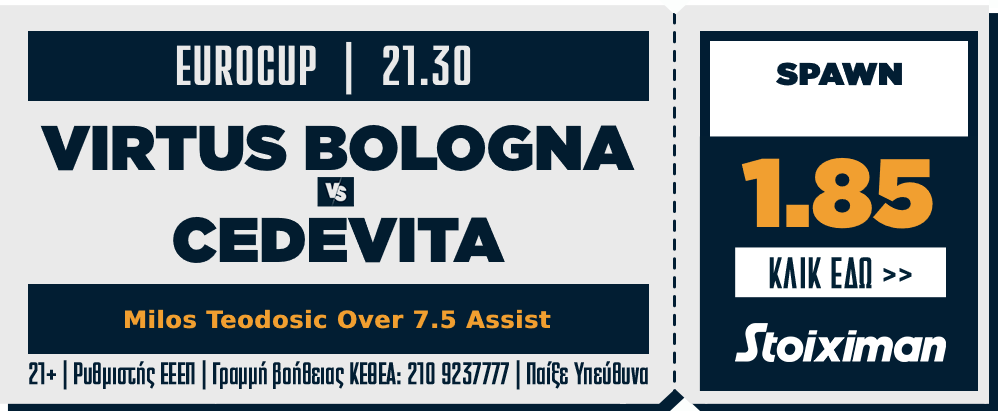 Σήμερα θα μεταφερθούμε στην Ιταλία και συγκεκριμένα στην Μπολόνια για τον αγώνα της Virtus Bologna με την Cedevita για το Eurocup.