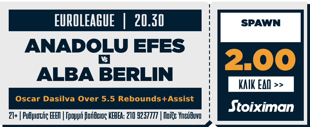 Σήμερα θα μεταφερθούμε στην Κωνσταντινούπολη για τον αγώνα της Anadolu Efes με την Alba Berlin για την 33η αγωνιστική της Euroleague!