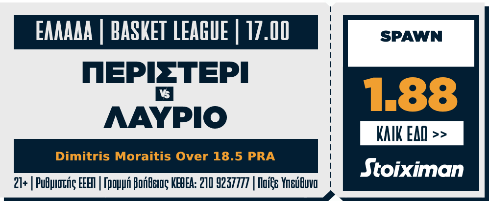 Το σημείο μας από τον αγώνα αυτό, είναι ο συνδυασμός Points+Rebounds+Assist του Δημήτρη Μωραΐτη, με line 18.5 και απόδοση 1.88 στην Stoiximan.
