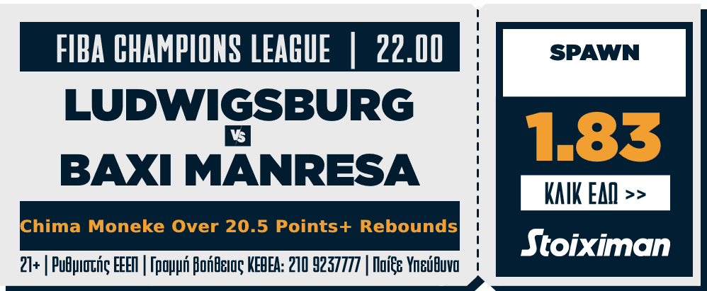 Το δεύτερο σημείο μας για σήμερα προέρχεται από τον δεύτερο ημιτελικό του FIBA Basketball Champions League, μεταξύ της Ludwigsburg και της Manresa.
