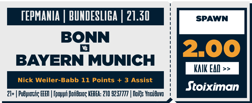 Το σημείο μας από τον αγώνα σήμερα, είναι ένα συνδυασμός Betbuilder, του Nick Weiler-Babb, 11 Points και 3 Assist με απόδοση 2.00 στην Stoiximan.