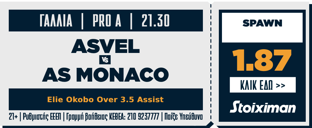 Elie Okobo Over 3.5 Assist @1.87 Stoiximan