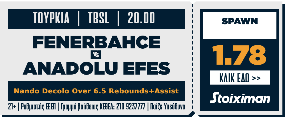 Σήμερα θα μεταφερθούμε στην Κωνσταντινούπολη για τον πρώτο αγώνα των τελικών του τουρκικού πρωταθλήματος, μεταξύ της Fenerbahce και της Anadolu Efes.