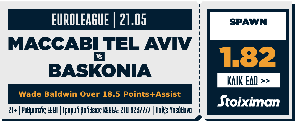 Καλησπέρα και καλό μήνα, ο Larkin μας κούρασε χθες λίγο αλλά εν τέλει μας πλήρωσε, οπότε όλα καλά! Σήμερα θα μεταφερθούμε στο Τελ Αβίβ, για έναν αναβληθέντα αγώνα, μεταξύ της Maccabi και της Baskonia για την Euroleague.