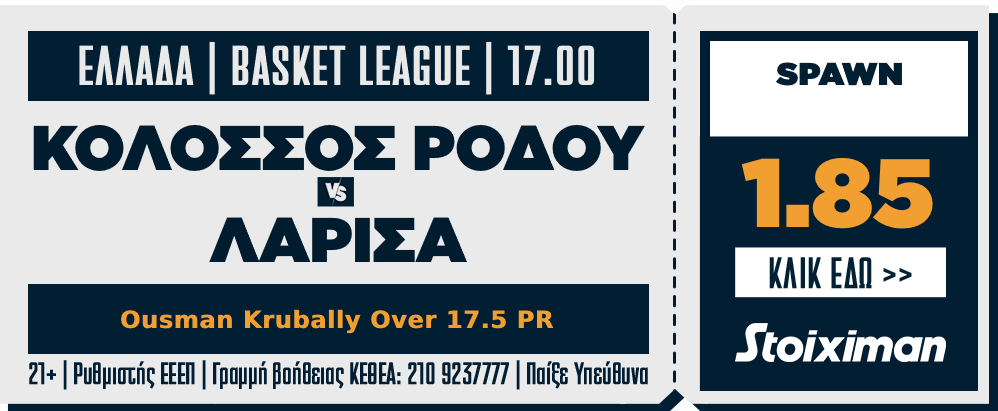 Σήμερα θα μεταφερθούμε στο κλειστό της Καλλιθέας, για τον αγώνα του Κολοσσού με την Λάρισα για την πρώτη αγωνιστική των Playoffs της Α1 Stoiximan Basket League.
