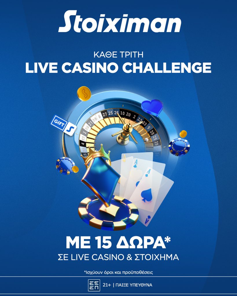 -Διπλό super έπαθλο* σε Live Casino και Στοιχημα κάθε Τρίτη στη Stoiximan!