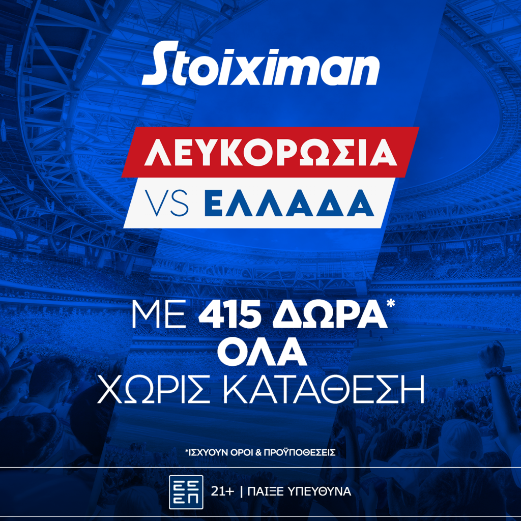Προσφορά* εγγραφής από τη Stoiximan με 415* δώρα* χωρίς κατάθεση*!