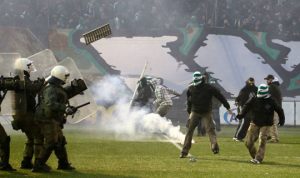 Η ποινή αυτή προήλθε από μερικά καθίσματα, τα οποία εικάζουμε ότι δεν ήταν και πολύ καλά βιδωμένα στις κερκίδες, που εκτόξευσαν οπαδοί των Πρασίνων, μετά την ήττα-σοκ από την Κηφισιά την προηγούμενη αγωνιστική. Να σημειωθεί ωστόσο, ότι κανέναν από αυτά τα άκακα αντικείμενα δεν έπεσε μέσα στον αγωνιστικό χώρο, υποδηλώντας το κακό σημάδι και την μυική ατροφία των οπαδών του Παναθηναϊκού.