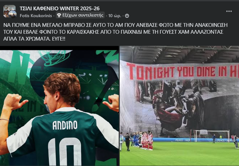 Μυθικη γκάφα αποκάλυψαν τα άγρυπνα μάτια των μυστών του Τσίλι Καφενείου σε ποστ του νέου πράσινου μεταγραφικού αποκτήματος, Σαντίνο Αντίνο.