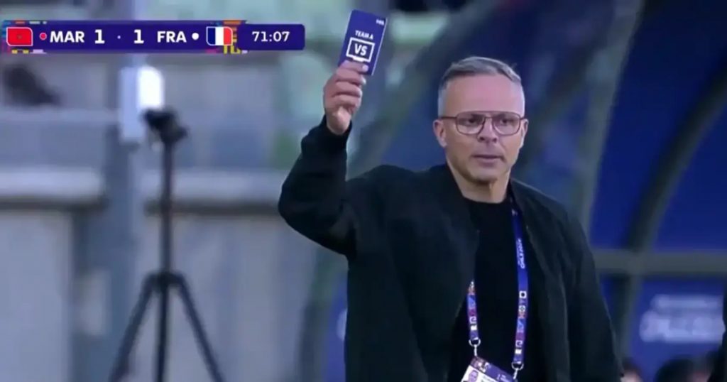 Moroccan coach uses new “challenge card” to request VAR review vs France in U20 World Cup semifinal — part of FIFA’s new rule allowing coaches to call for video reviews