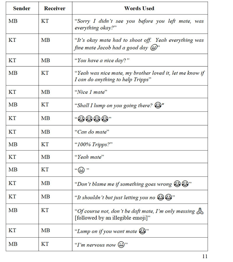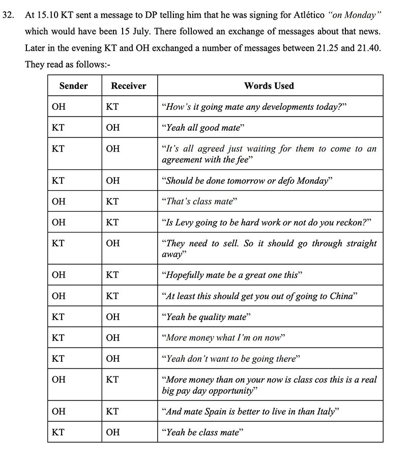Τον ρώτησε αρχικά ένας φίλος αν θα έπρεπε να τον ποντάρει ότι θα μετακομίσει στην Ατλέτικο. Ο Τρίπιερ του απάντησε ότι αυτό μπορεί να συμβεί. “Μην με κατηγορήσεις αν κάτι πάει στραβά. Δεν θα πάει αλλά απλά σε ενημερώνω”. Σε μία άλλη συνομιλία του, ο Τρίπιερ αποκάλυψε σε φίλο του, ότι η Τότεναμ τότε ήθελε ακόμα 500 χιλιάδες λίρες για να πειστεί να τον πουλήσει. Αυτός ο φίλος αργότερα θα πόνταρε 2 στοιχήματα των 22 λιρών στη μετακίνηση του Άγγλου στους “ροχιμπλάνκος”. Ποτέ δεν είπε ρητά στους φίλους να ποντάρουν τη μεταγραφή του στην ομάδα που αγωνίζεται σήμερα. Για την ακρίβεια είχε πει σε μία άλλη συνομιλία ότι οι booker του δίνουν πιθανότητες 6/1 να κάνει τη μεταγραφή στην ισπανική ομάδα. Καθώς πλησίαζε η μεταγραφή του, έστειλε νέα μηνύματα στους φίλους στο γκρουπ του WhatsApp. “Θεωρήστε τελειωμένη τη μεταγραφή” ανέφερε και πρόσθεσε ένα emoji με thumbs-up. Δύο από τους φίλους του Τρίπιερ λίγο αργότερα θα πόνταραν την μετακίνησή του. Το ποντάρισμα περιλάμβανε 300 λίρες σε ένα σημείο με 4/11 πιθανότητες.