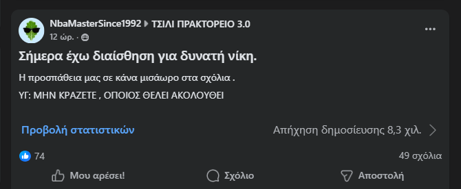 Κάποιοι ήξεραν και τον περίμεναν. Κάποια ΑΜ πάτησαν τελίτσα για αν ακολουθήσουν το ποστ (αντί να πατήσουν ενεργοποίηση δημοσιεύσεων ΓΤΧΣ).