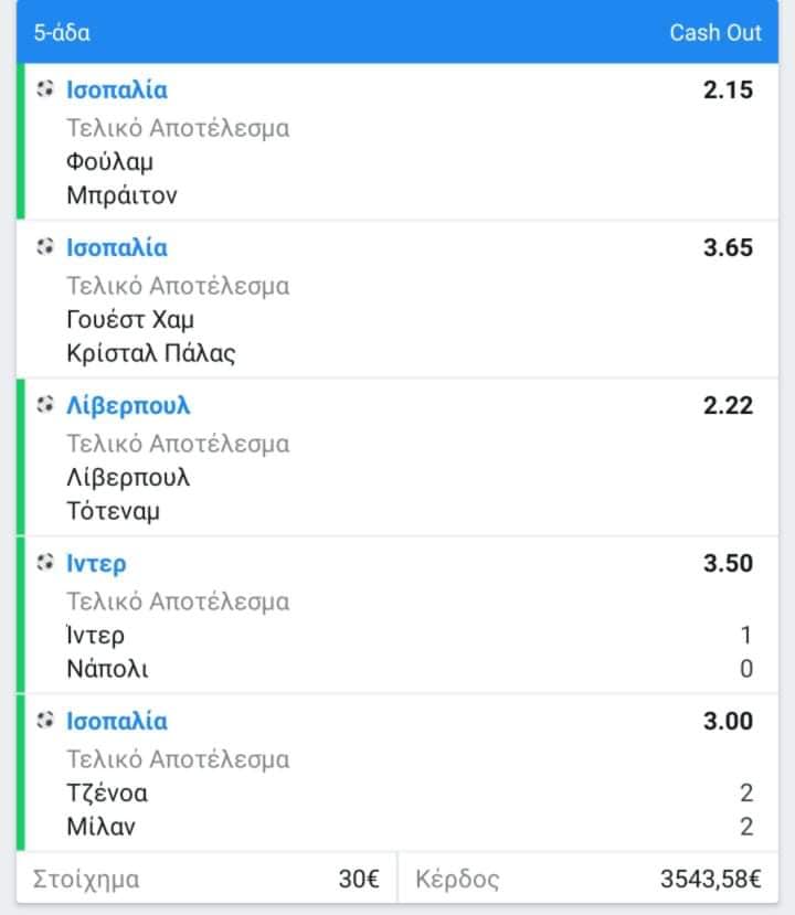 Την προηγούμενη εβδομάδα έγινε ιδιαίτερη μνεία (κοινώς ευχούλες) στον πάτο (φωνή Γεωργίου) ενός φίλου του κορώνα γράμματα ο οποίος “τσίμπησε” ένα χιλιαρικάκι και βάλε, παίζοντας 5 σέντρες