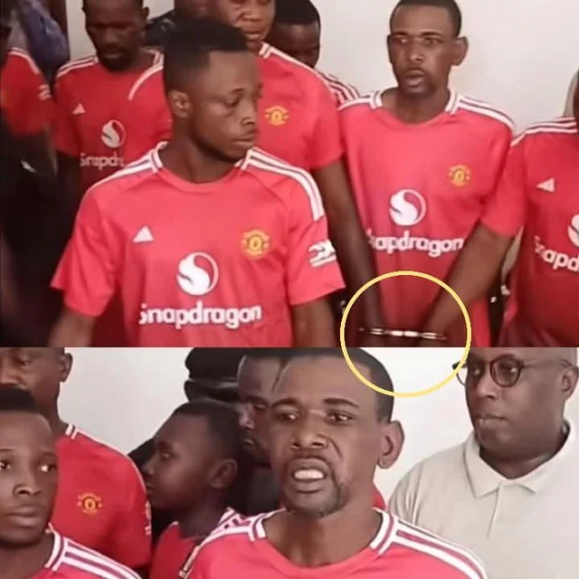 Εικόνες κάνουν τον γύρω του διαδικτύου που δείχνουν πολλούς άντρες με μπλούζες των κόκκινων διαβόλων ενώ φαίνεται να τους έχουν περάσει χειροπέδες.