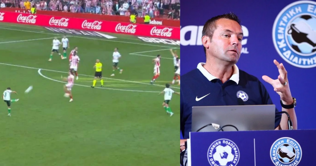 Ρέφερι σφυρίζει λήξη με την μπάλα στον αέρα, αυτή καταλήγει γκολ