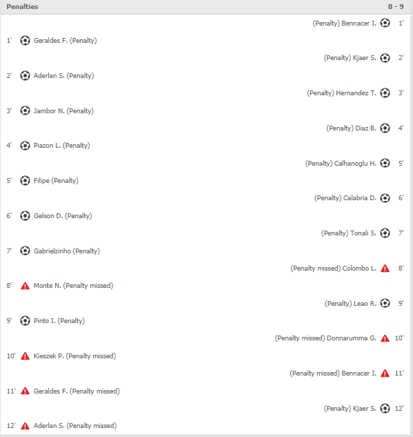 Κακές αναμνήσεις στους κιτρινόμαυρους φίλους μας θύμισε ο Ρίο Άβε – Μίλαν μιας και χρειάστηκαν 25 (ολογράφως 1 στην παράταση για την Μίλαν και 24 στην μαρτυρική διαδικασία των μπέναλντι
