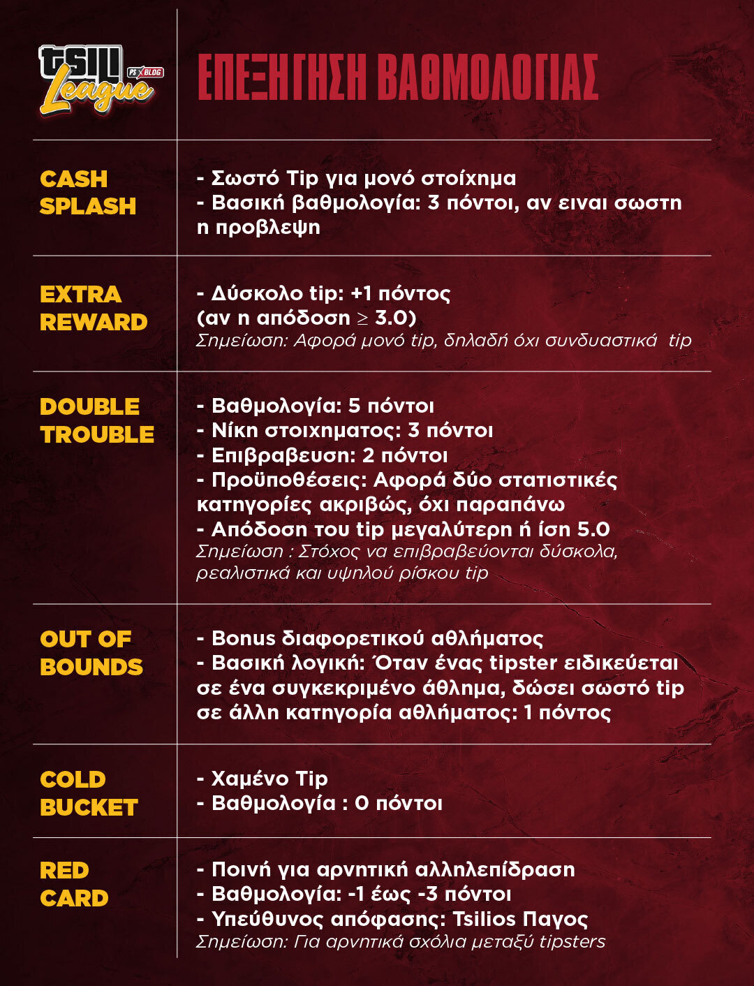 Ακολουθεί ο τρόπος βαθμολόγησης των προγνωστικών:
