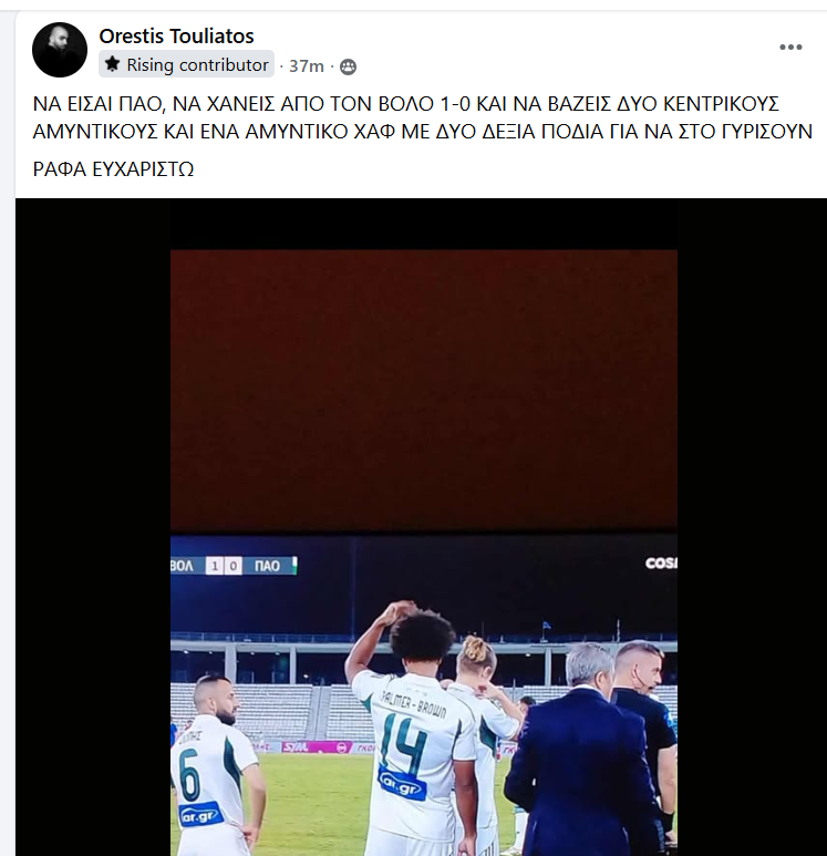 Ο άνθρωπος που έχει προπονήσει Βαλένθια, Λίβερπουλ, Τσέλσι, Νάπολι, Ρεάλ, θα έχει πλέον στο βιογραφικό του ήττα από την ομάδα του ΝΠΣ Βόλου με 1-0 και γενικότερα την πρώτη ήττα του στον πάγκο του Παναθηναϊκού και φυσικά οι φίλο του «Τριφυλλιού», έβγαλαν τις αυτοκτονικές τους τάσεις, μια συνήθεια των τελευταίων 15 χρόνων, που θα γίνουν 16 φέτος: